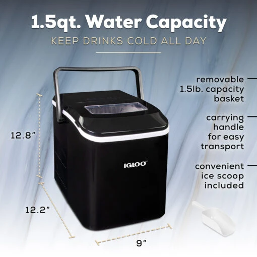 IGLOO® 26-Pound Automatic Self-Cleaning Portable Countertop Ice Maker Machine With Handle, Black