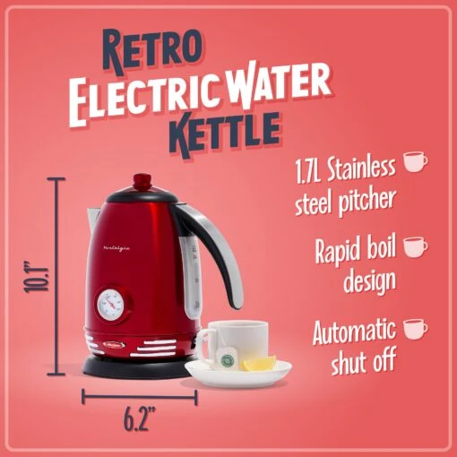 Retro 1.7-Liter Stainless Steel Electric Water Kettle With Strix Thermostat, Retro Red