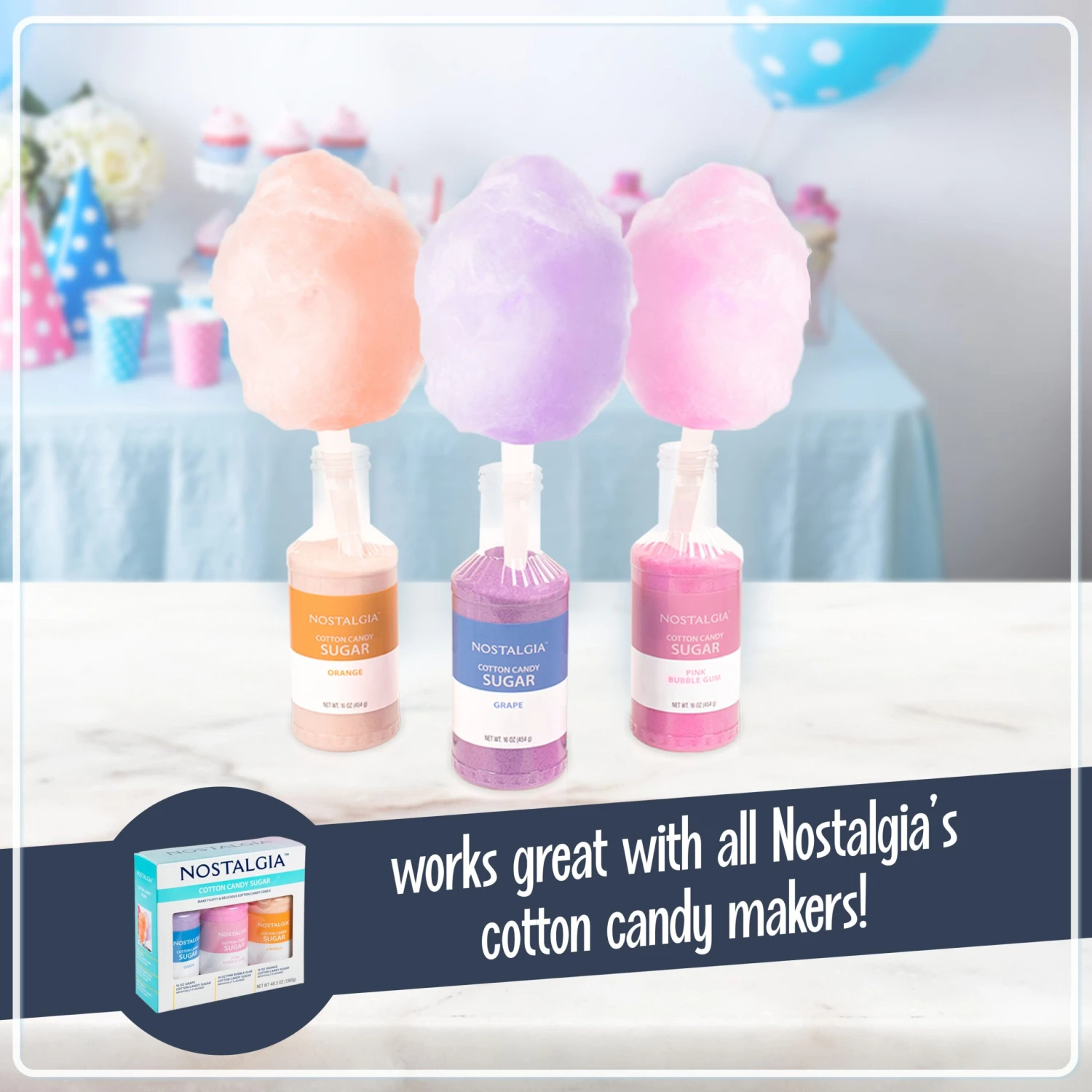 - COTTON CANDY KITS: Make cotton candy with these great Nostalgia cotton candy kits! (Cotton Candy Flossing Sugar – CCFS300, Hard Candy Party Kit – HCK800)