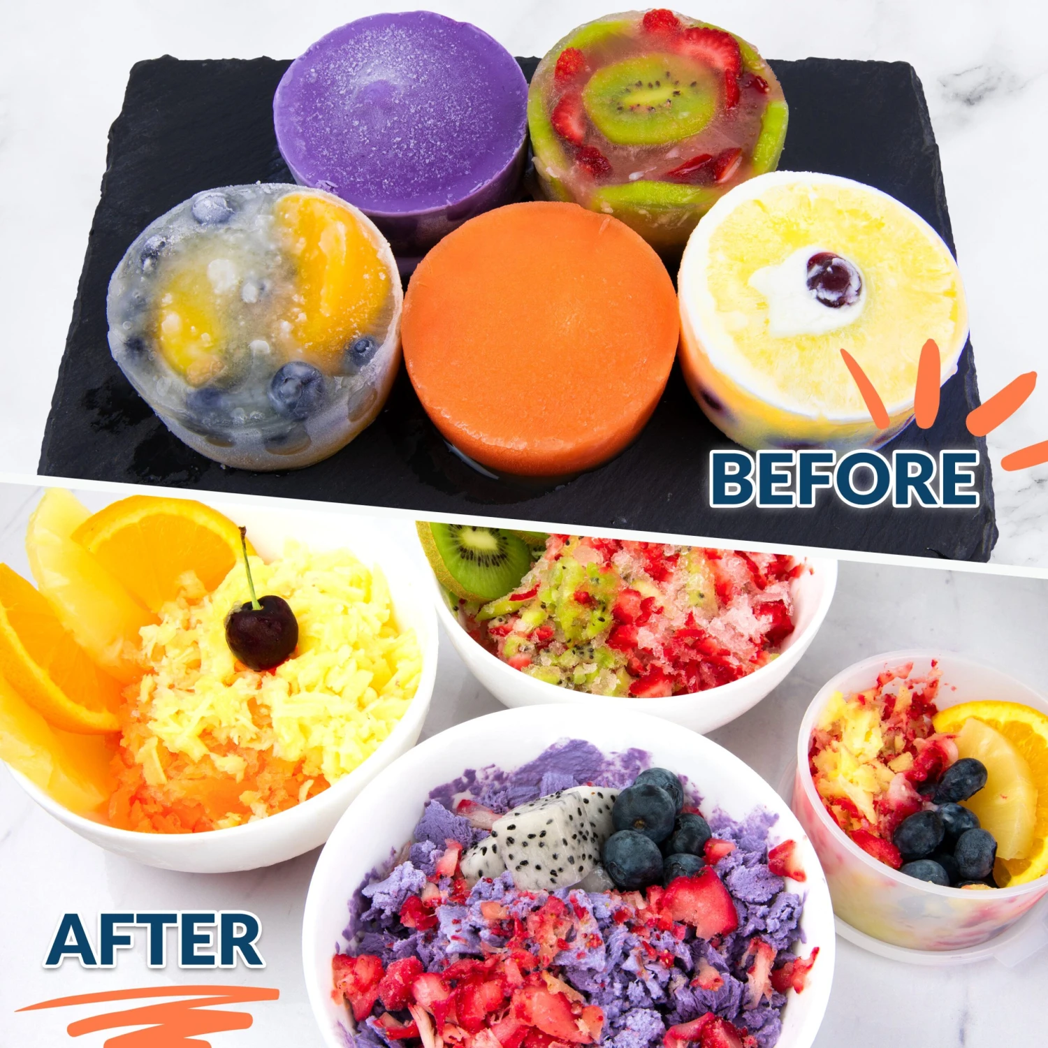 - ENDLESS POSSIBILITIES: There are lots of fruits you can make frozen treats with: berries, watermelon, pineapples; If its fruity, it can be frozen and shaved. Go beyond fruit and try shaving types of milk, soda, and more. Get creative with your shaving!