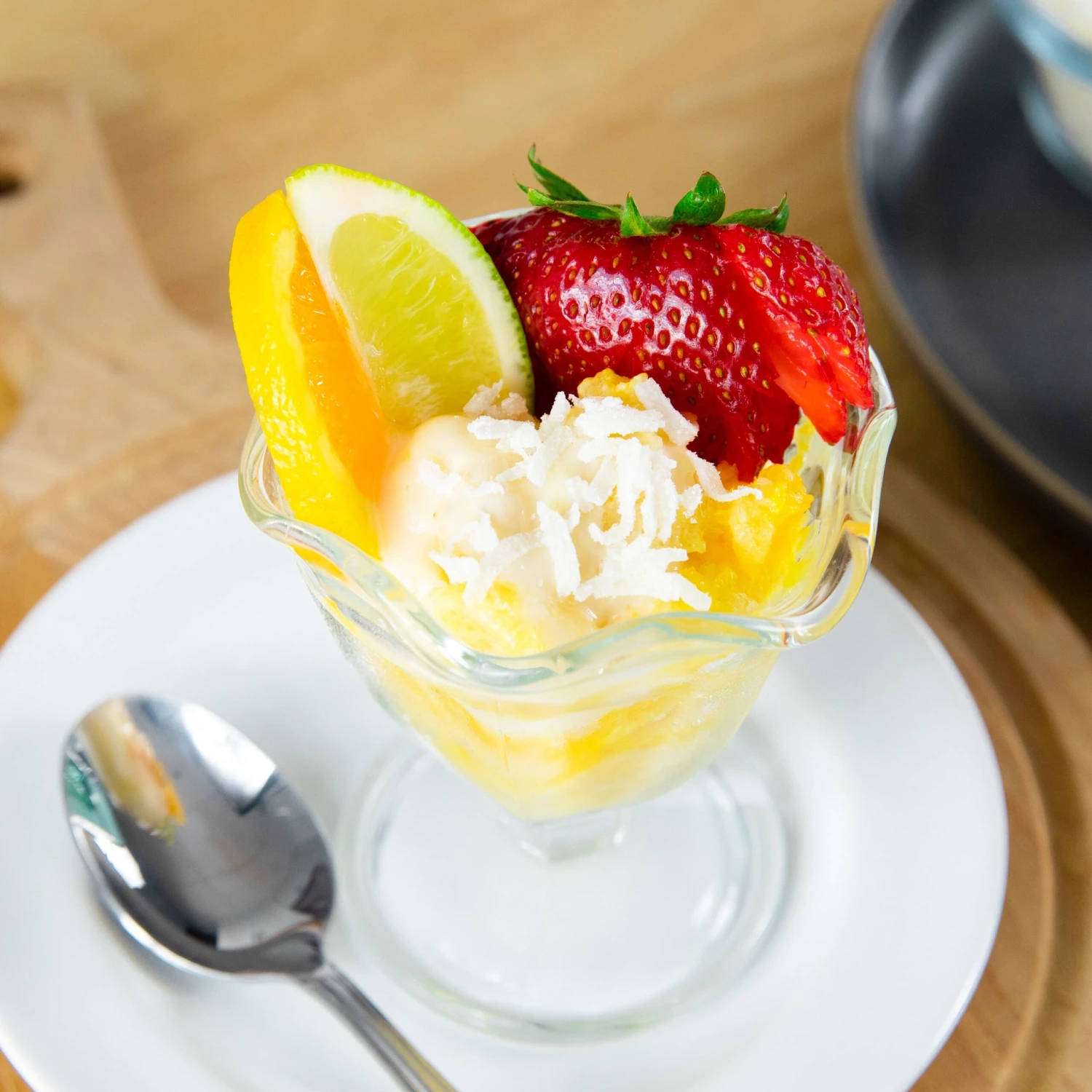 - SHAVED ICE: This machine turns your favorite fresh fruit into soft, fluffy shaved fruit ice that’s deliciously sweet and healthy. It requires few ingredients and makes a delightful dessert.Â