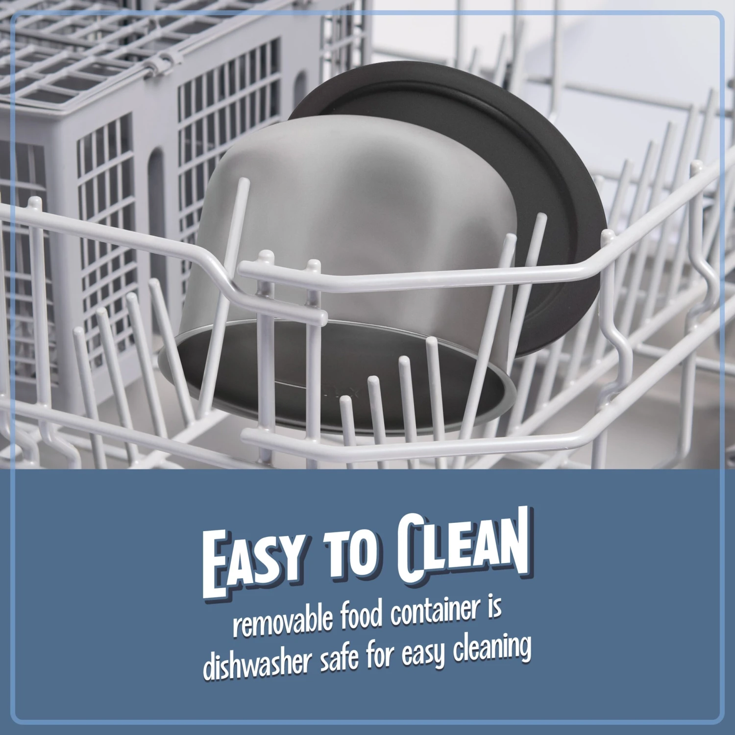 - EASY TO CLEAN: The removable food container is easy to clean and is dishwasher safe providing long-lasting use. Spend less time worrying about dishes and more time enjoying your food.
