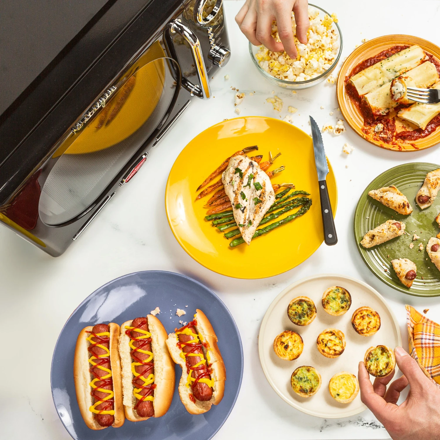 - Convenient Cooking Controls : 12 pre-programmed cooking settings, delay timer and express cooking provide options for the optimal heating of popular foods like popcorn, pizza, potatoes, veggies and more