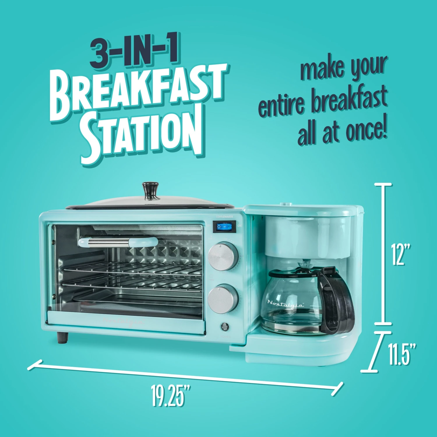 - EASY TO USE: Get breakfast cooking quick and easy using the simple dials for temperature and time controls and on/off coffee maker switch.