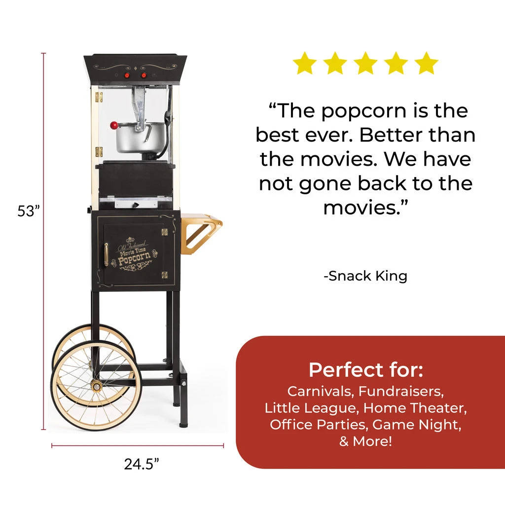 - HANDY STORAGE COMPARTMENT: Conveniently store popcorn kernels, oils, seasonings, and other popcorn serving accessories in the base of the unit.