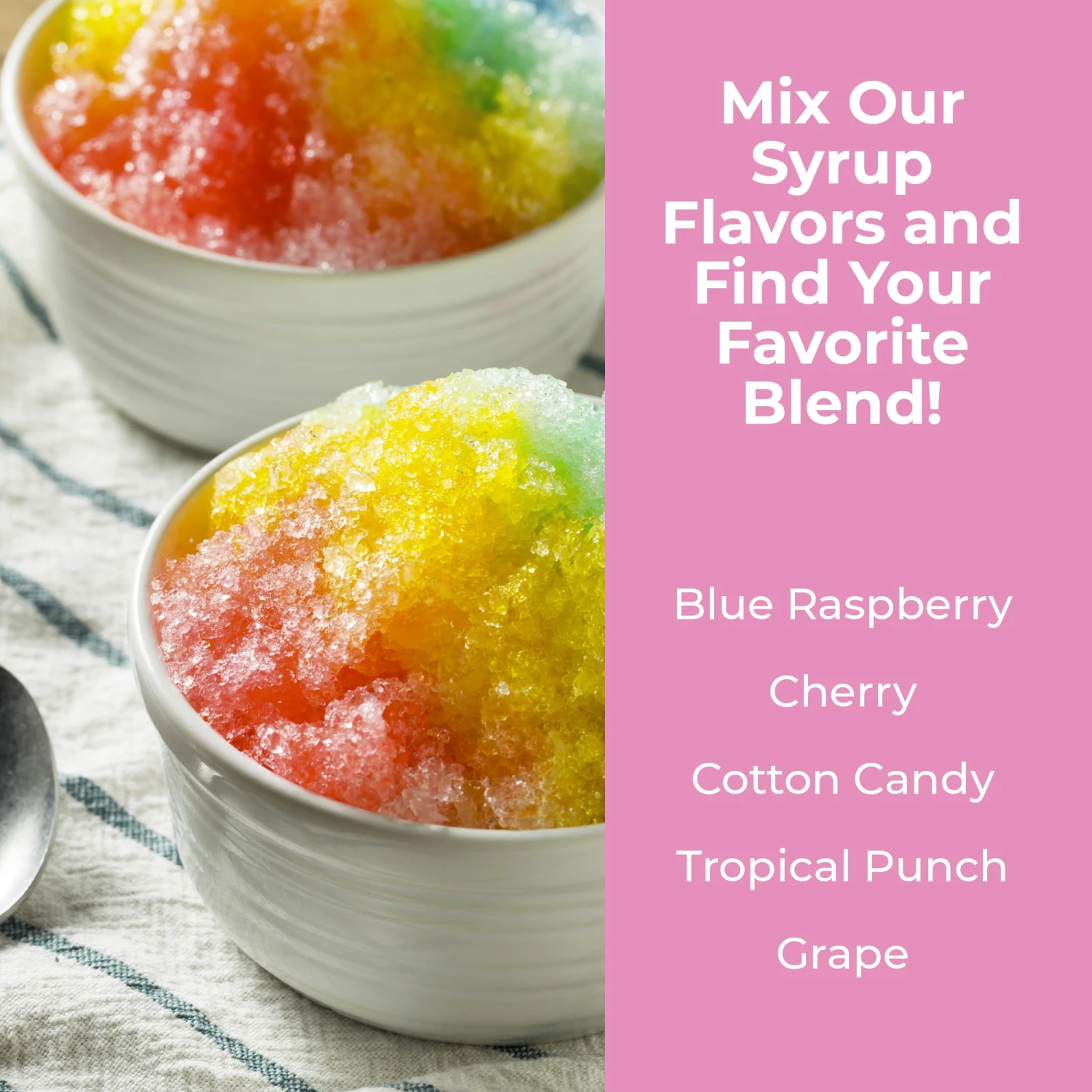 - ACCESSORIES – Includes 2 (8 oz.) reusable plastic snow cones, along with an ice scoop to easily serve snow cones.Â